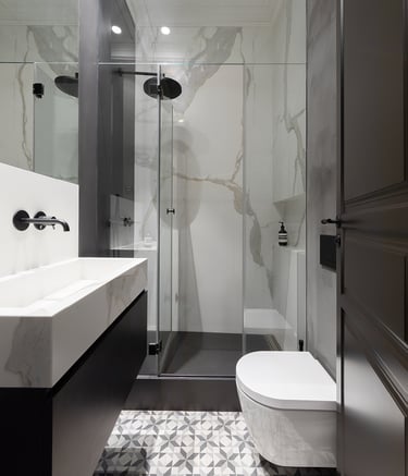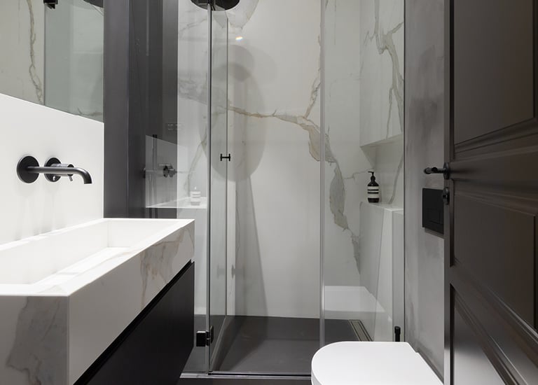 Instalación de granito, quarztone y piedra sinterizada en baños.